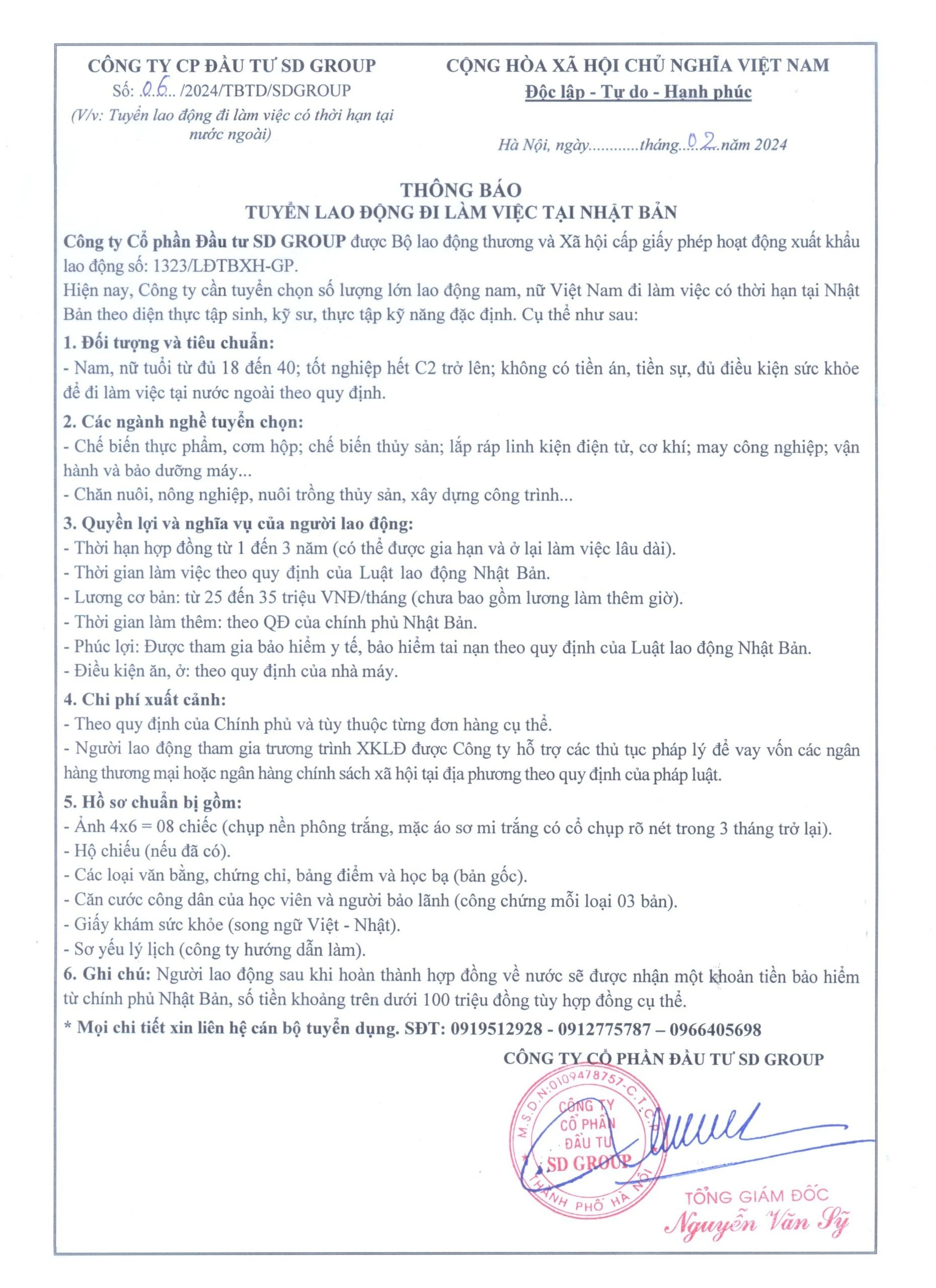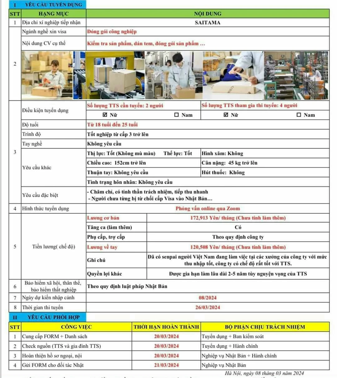 tuyển dụng đơn hàng Nhật Bản, Đài Loan và một số Đơn hàng cụ thể.